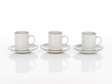 Lot Description:Dame Lucie Rie (1902-1995) - Set of Three Coffee Cups with Saucers, c. 1975