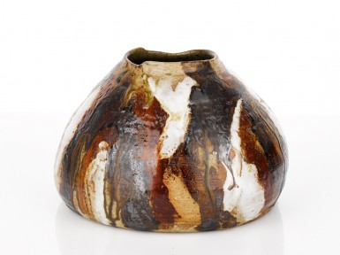 variegated glaze in shades of brown, tan, white and ochre, signature inscribed to base 'Milton Moon'