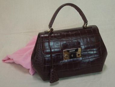brown leather and imprinted handbag with golden buckle and dust bag,