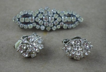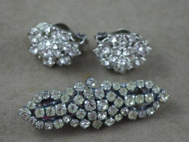 Lot Description:Crystal earrings (clip-on) with brooch/dress clip