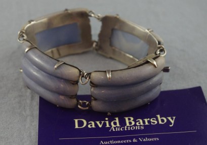 Lot Description:Good vintage Mexican silver & agate bracelet