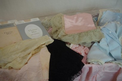 to include some vintage silk drawers, along with a group of gloves, mixed condition and quality, -
