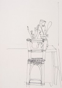Still Life with Chair, Paint Brushes, and Kitchen Utensils