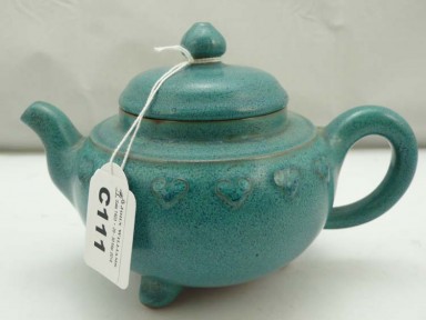 Lot Description:Chinese Yixing teapot , robins egg glaze