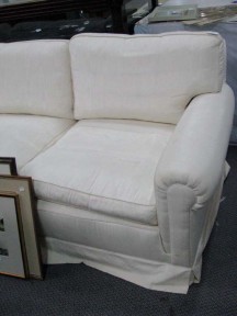 Lot #F7 - Cream moiré silk two seater settee, down filled