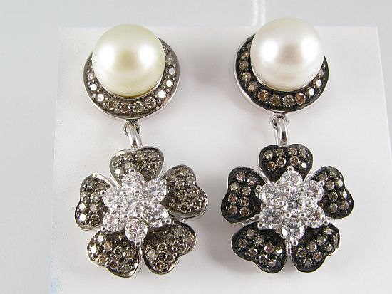 Lot #160 - A Pair Of Cultured Pearl And Diamond Earrings
