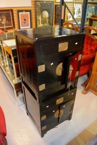 Lot Description:Pair of black lacquered oriental bedside chests