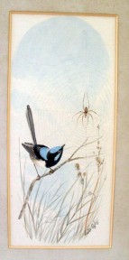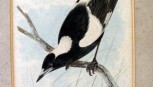 i) Kookaburra with snake ii) Magpie with worm iii) Blue Wren with insect