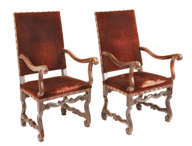 Lot Description:A Pair of Spanish Walnut Open Armchairs, Early 17th Century