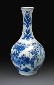 Lot Description:A Blue And White Bottle Vase, Probably Circa 1640