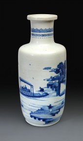 Lot Description:A Blue And White Rouleau Vase Qing Dynasty, Kangxi Period