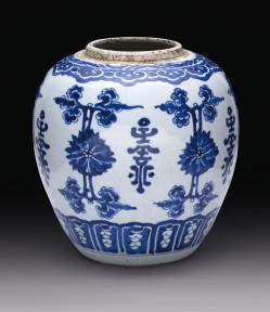 Lot Description:A Blue And White Ovoid Jar Qing Dynasty, Kangxi Period