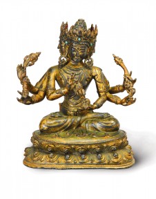 Lot Description:A Gilt Bronze Figure of Guhyasamaja Lokeshvara, Tibet, 16th/17th Century
