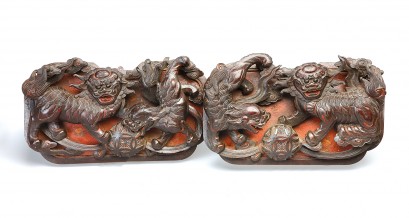 Lot Description:A Pair of Carved Lacquered Wood Wall Plaques, 19th/20th Century