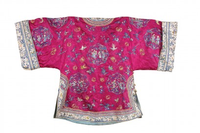 Lot Description:A Lady's Majenta Silk Informal Robe Qing Dynasty, Late 19th Century