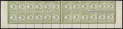 interpanneau block of 24 (12x2) with both No Monogram blocks [BW:1z/za], the upper units with Double Perforations at Base and the lower units with Double Perforations on Three Sides [BW:1bb/bc], some almost inevitable perf splitting has been neatly reinforced but the right-hand block of 6 is unmounted. -