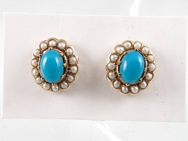 Lot #117 - A Pair of Turquoise And Seed Pearl Cluster Earrings