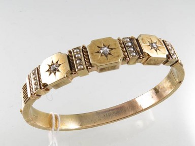 Lot Description:A Victorian Diamond And Pearl Hinged Bangle