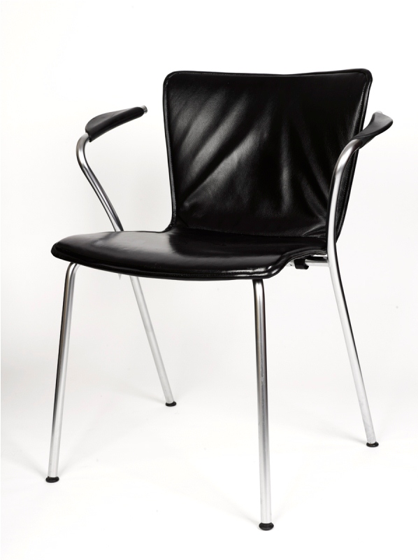 manufactured by Fritz Hansen with black upholstery and chrome supports (3)