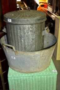 Lot Description:2 galvanised items: lidded dust bin and a circular laundry tub