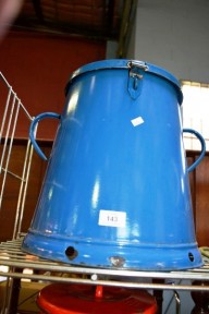 Lot #143 - Large blue enamel kitchen storage container double handled