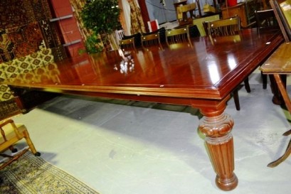 flame mahogany top on base with 5 well carved fluted legs includes centre leg each with a hidden castor, central leg currently not placed, but available, comes with protective cover, 458cm long (15ft) x 152cm wide (5ft) Note: The top does not -