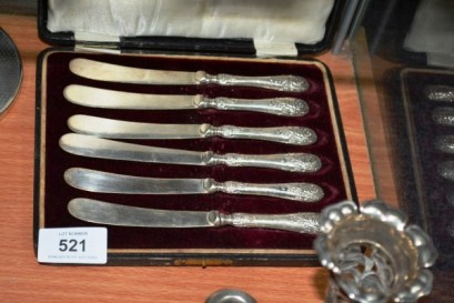 Lot #521 - Cased set of 6 sterling silver handled cake knives