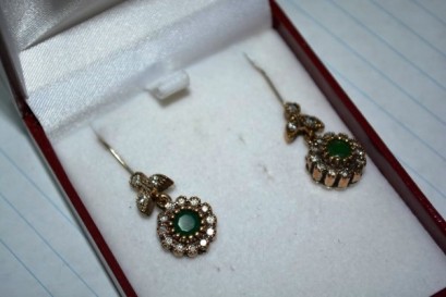 Lot Description:Pair of silver earrings set with emeralds and white stones