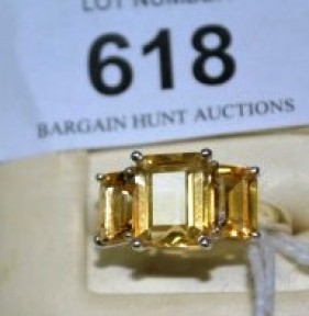 Lot #618 - Silver ring set with 3 facetted square citrines