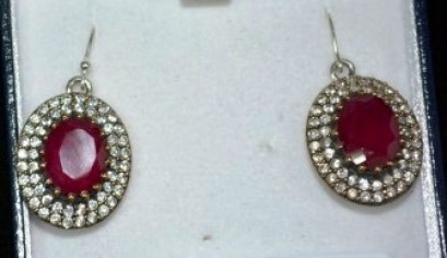 Lot Description:Pair of ornate earrings with ruby & white stone setting