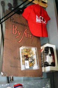 mostly Qantas incl. tub containing a lge qty of lapel pins, badges etc, together with a Qantas By Air folio, cap & racecar -