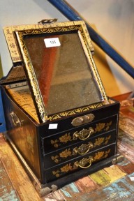 fold out mirror and 3 trinket drawers, ebonised and gilded finish