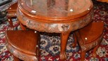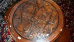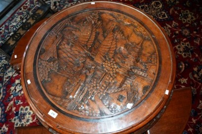 Lot Description:Vintage carved Chinese tea circular coffee table carved detail