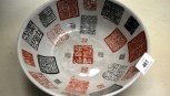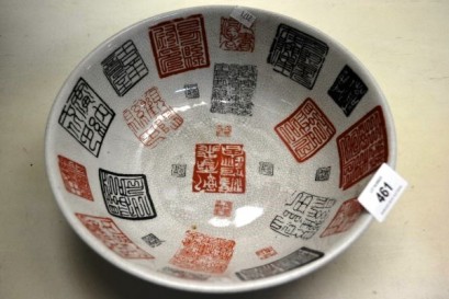 Lot Description:Chinese bowl with black & red calligraphy decoration on a crackle glaze