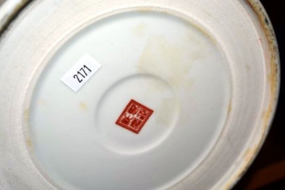 Lot Description:Chinese cylindrical brush pot with red & black calligraphy