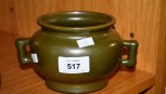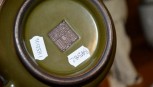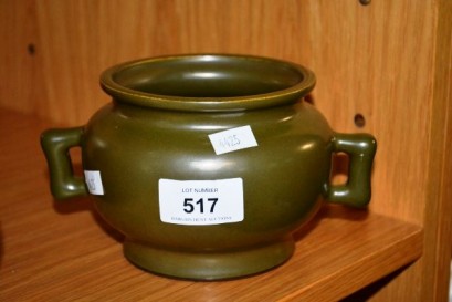 twin handles, matte green glaze, impressed characters to underside, 9cm h. -