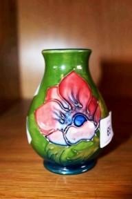 Lot Description:Moorcroft vase with Anemone pattern on a green and blue ground
