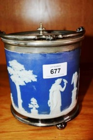 Lot #677 - Antique Wedgwood jasperware biscuit barrel