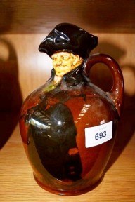 Lot Description:Rare Royal Doulton Kingsware whisky decanter 'The night watchman' with modelled head