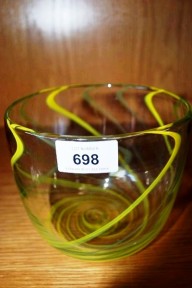 yellow and green swirl design initialled to base 'AWK 86', 30cm H -
