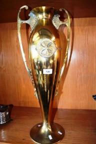 double handled with embossed medallion design to each side, small dents to base, 64cm H