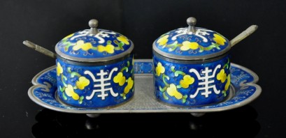 Lot #433 - Chinese Silver Cloisonne 3 Pce Condiment Set