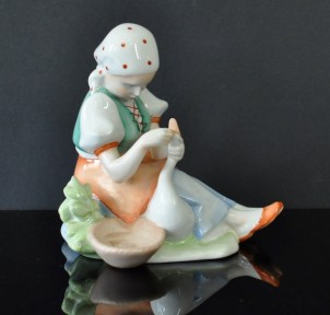 Lot Description:Hungarian Zsolnay Goose Girl Figure