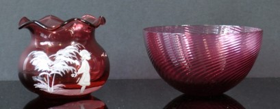 Lot #628 - 2 Various Cranberry Glass Bowls