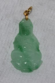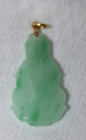 Lot Description:A Chinese Carved Ice Jadeite Figural Pendent ,18K 翡翠吊坠