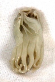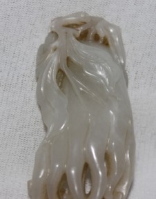 Lot Description:A Chinese Carved White Jade Chayote, 清代白玉母子佛手把件