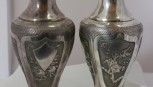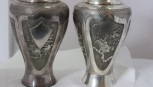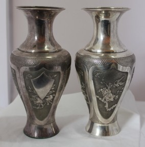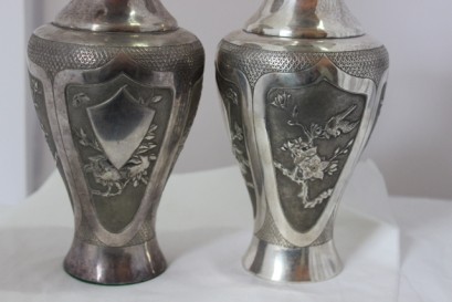 Lot Description:A Pair of Chinese Export Silver Gilt Vases, 外销花鸟纹银对瓶