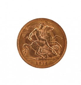 A 22ct gold sovereign dated 1912 with King George. Weight 3.9g. -