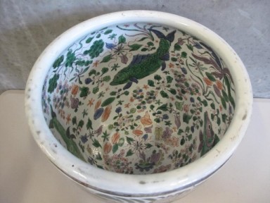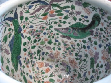 well painted with Kylin to exterior and fish to interior measures 36.8cms Diam x 34cms Ht -