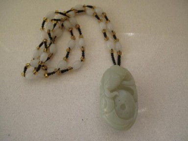 Lot Description:Chinese jade necklace carved with fish